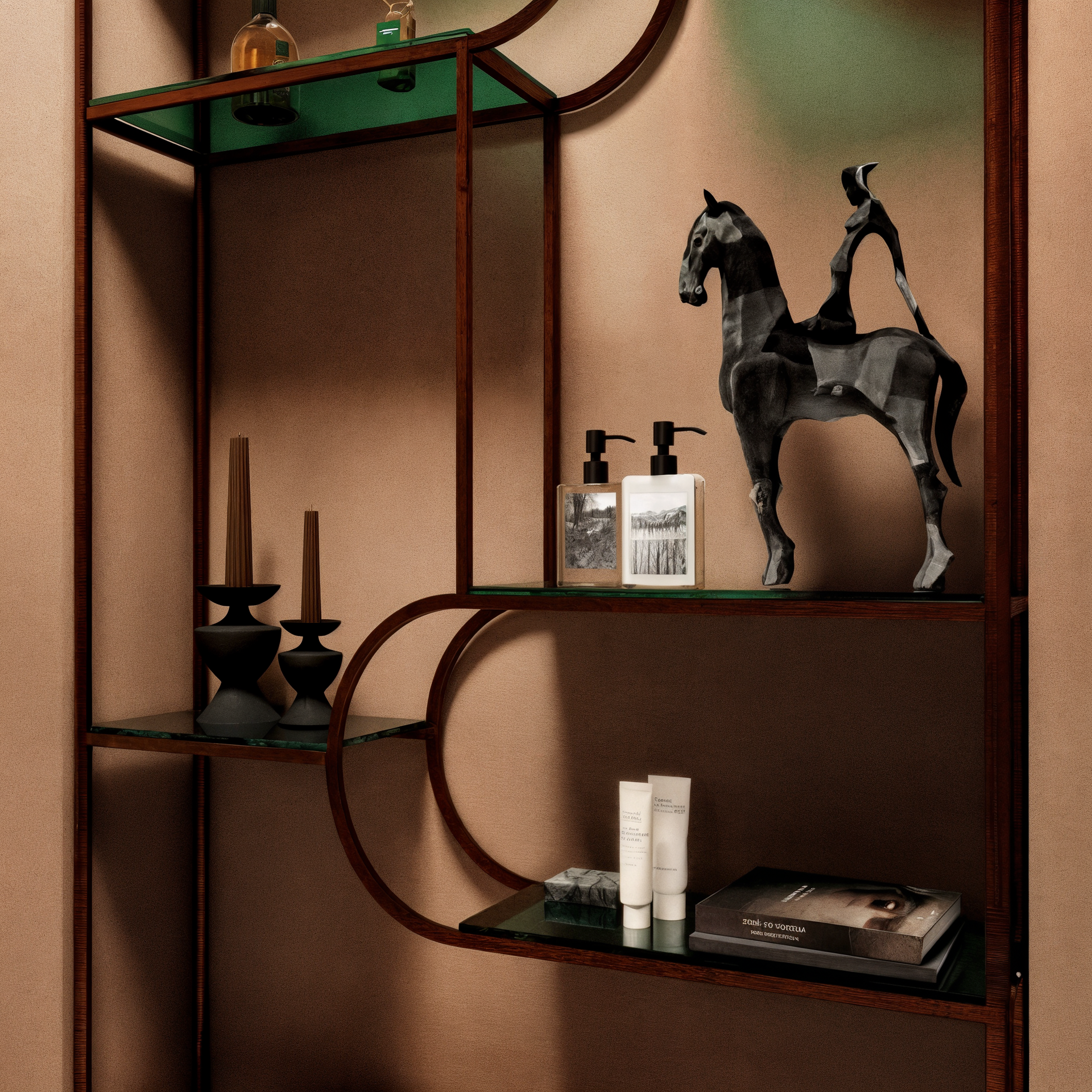 Концепция трех коней: статуэтка Nando Kallweit (Германия), картина Гульнара Фаляхова и напольный смеситель от Ramon Soler.
